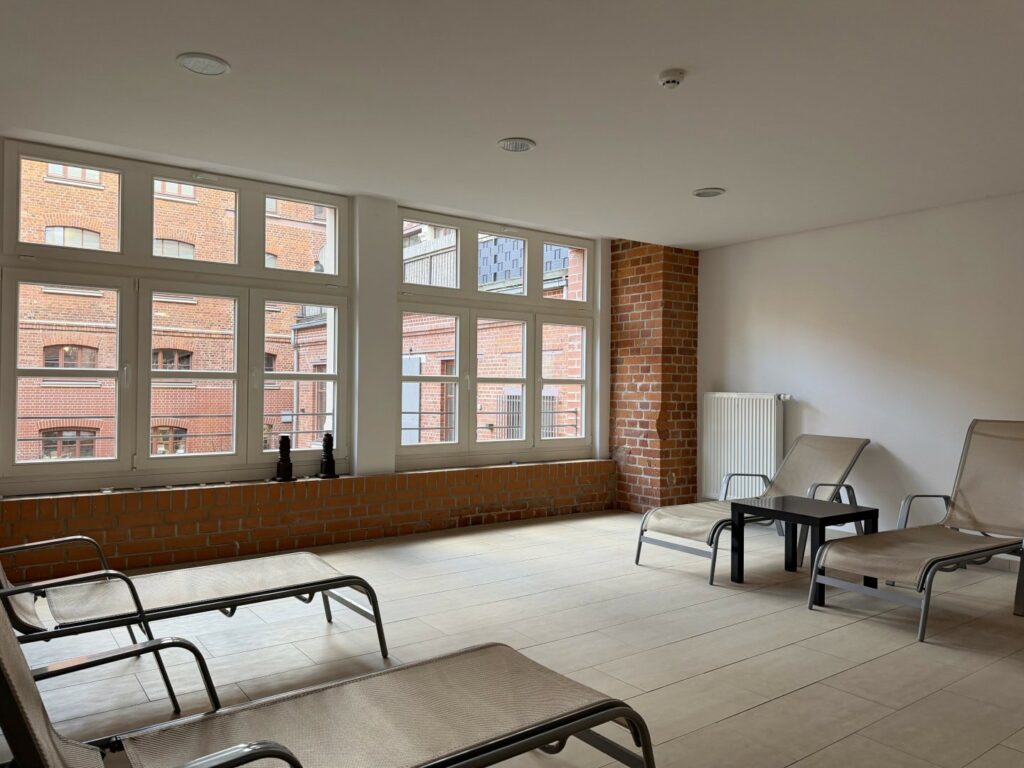 Exklusive Gemeinschaftseinrichtungen wie ein hauseigenes Fitnessstudio sowie eine Sauna mit Ruheraum schaffen ein Zusatzangebot, das die Positionierung im gehobenen Mietsegment nachhaltig stärkt.